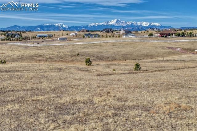 Tremendous sweeping Pikes Peak and mountain views in sought after Black Forest near the coveted Flying Horse North community and golf course! 5 acres with rolling lush green meadows and amazing home sites with walk-out basement potential. Second 5 acre lot bordering this lot is for sale as well perfect for multi-generational living or additional acreage. Domestic well permit in Dawson Aquifer available. No HOA or covenants - zoned for horses, outbuildings and animals. Award winning School District 38. Quick access to Highway 83 or I-25 and an easy commute to Colorado Springs or Denver. Located in a desirable area with beautiful custom homes surrounding and access to the best amenities in northern El Paso County. Natural gas and electric nearby with high speed internet available.