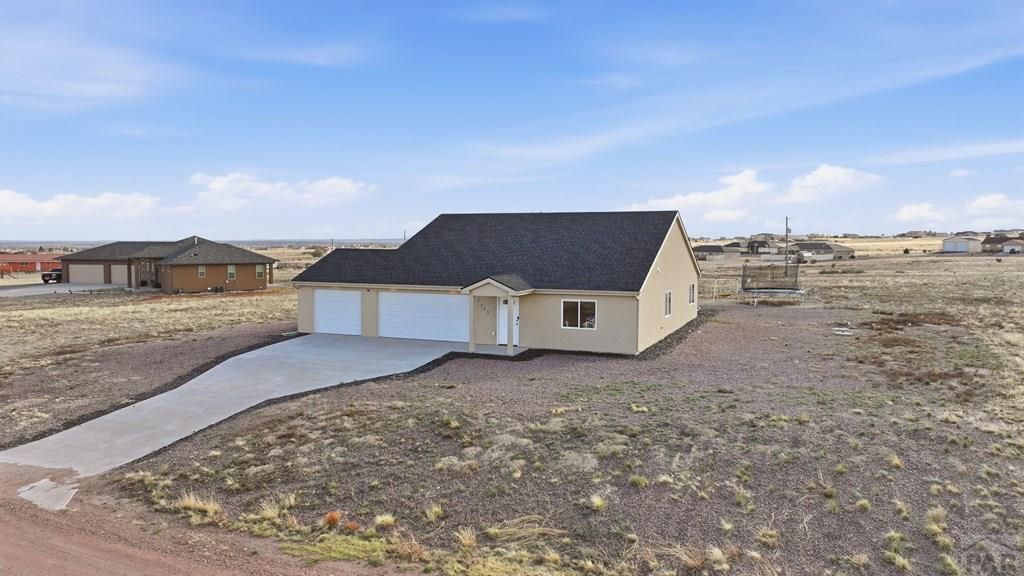 Experience modern Colorado living in this move-in ready ranch-style home built in 2021, situated on 1.45 acres in Pueblo West. This 3 bedroom, 2 bathroom home features a highly desirable open concept floor plan with seamless flow between the kitchen, dining, and living areas, creating a bright and welcoming space filled with natural light. Designed with comfort and functionality in mind, this main-level living home offers contemporary finishes and the advantages of newer construction and energy efficiency. The private primary suite provides a relaxing retreat, while the additional bedrooms offer flexibility for guest space, home office, or hobbies. Enjoy the freedom of Colorado acreage living with room for RV parking, recreational vehicles, future shop or garage, gardening, or potential horse property. Wide open space and peaceful surroundings make this property ideal for those seeking quiet rural living with convenience nearby. Located just 35 minutes from Fort Carson, this home is a great option for military buyers or commuters looking for affordable Colorado homes with land. Only 25 minutes to Pueblo Reservoir, offering boating, fishing, camping, hiking, and outdoor recreation. Easy access to Highway 50, shopping, and dining provides the perfect balance of country lifestyle and accessibility. If you're searching for homes with acreage in Pueblo West, open floor plan homes, or Southern Colorado real estate, this property is a must see.