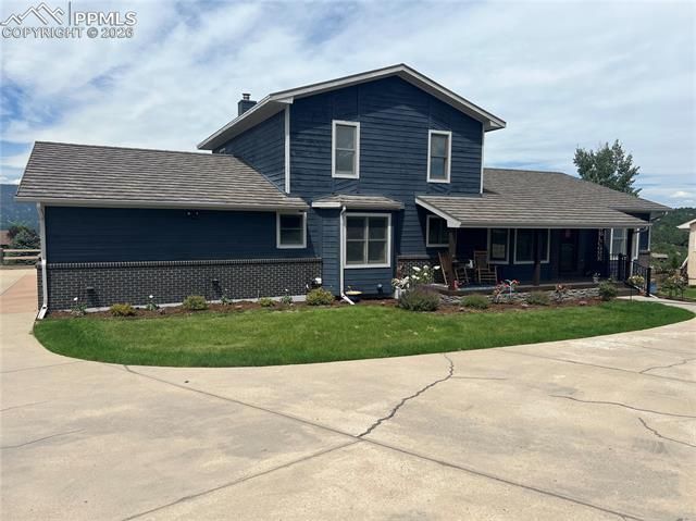 SEE YOURSELF HERE, in this beautifully updated 4/4/3 retreat, where charm, comfort, and breathtaking views come together effortlessly. This inviting home captures the essence of a cozy cottage while living much larger than expected. From the moment you arrive, the long circular drive and welcoming front porch set the tone for relaxed Colorado living. Inside, you’ll find a fully updated interior that blends warmth and style, opening into generous living areas that flow seamlessly to the outdoors. With hickory flooring throughout, new kitchen cabinets and beautiful granite surfaces, a woodburning fireplace and custom ironwork railings, the main floor's two bedrooms, bathrooms and flex office space, laundry and garage access could be all you need for comfort and ease of living. But there’s more… a private sanctuary awaits in the upper-level owner’s suite, complete with 2 large closets, two-sided vanity, large shower and tub and a balcony for morning coffee or sunset views. The walk-out basement is designed for entertaining, featuring a large gathering space complete with a projector — perfect for hosting movie nights or game days with friends and family. This level also provides a bar, full bath, storage space and easy access to the outdoors. Surrounded by mature trees and picturesque wildflower meadows, the property offers a sense of privacy and tranquility, yet remains incredibly convenient to I-25 and the growing amenities, dining, and shopping of Monument. The expansive composite back deck is ideal for hosting gatherings or simply soaking in the sweeping, unobstructed views of the entire Front Range. Perfectly positioned across from the iconic Palmer Lake Christmas Star, this home offers not just a place to live, but a setting to truly experience Colorado’s beauty year-round. Whether you’re looking for a peaceful escape, a place to entertain, or a home that blends charm with modern updates, this home delivers it all. Make it yours today.