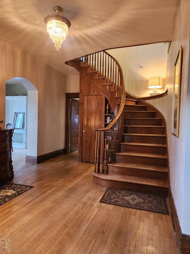 Rare find! This classy Victorian stone beauty on a tree-lined, desirable street is very special. Spectacular staircase brings to mind the gorgeous Rosemont Museum, with its sweeping curves drawing you into the expected comfort of better days to come. Updated electrical work and a practical layout can make a comfortable multi-generational home for you and your loved ones. Refrigerated window air conditioning. The basement has great storage areas, plus a workshop. The 2 garages can house 3 cars with access off the alley, securing the elegance of the beautiful front yard and entry porch. Fenced back yard and nice paved area for the kids' toys. Please verify sizes, as the basement is an estimate, and some rooms are irregular. Several rooms can be multipurpose, so you can make this your own! The roof is almost brand new.